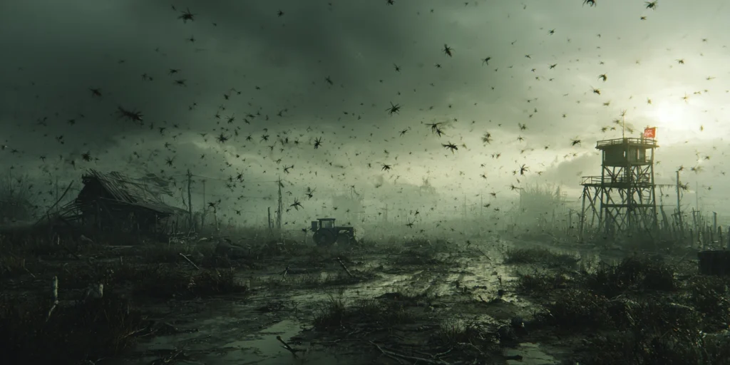 恐怖的蝗虫席卷了已经所剩不多的废土,金属,木材,粮食,一切都是它们的食物。